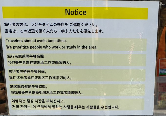 This store prioritizes people working or studying in the area.(中国語版) 旅行者请避免午餐时间光顾本店。