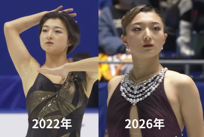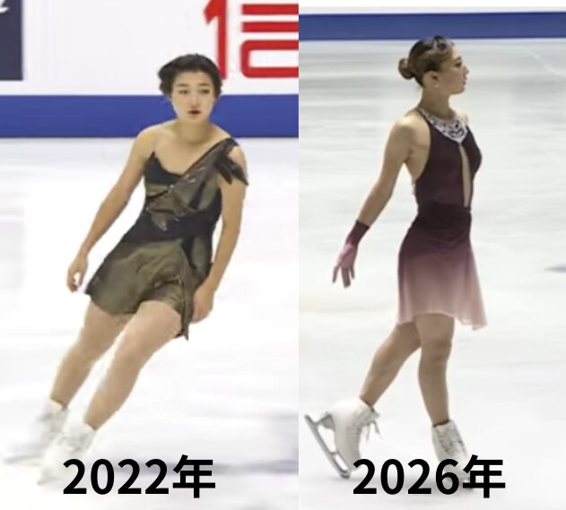 今回比較するのは、2022年の世界フィギュアスケート選手権(優勝した年)と、2026年現在の写真です。